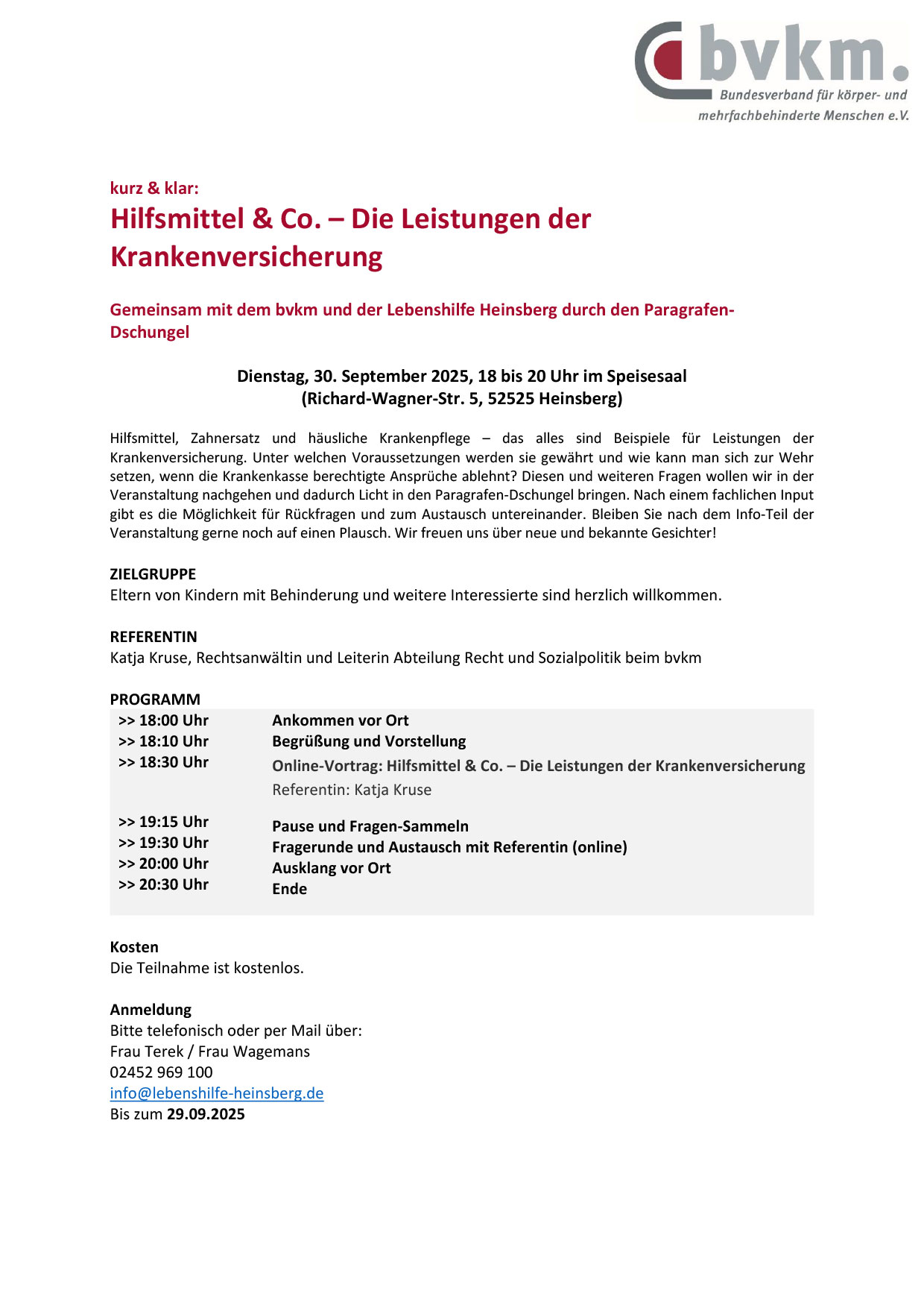 Der nächste Infoabend des BVKM zusammen mit der Lebenshilfe Heinsberg, diesmal zum Thema Hilfsmittel, findet nächste Woche Dienstag, 30.9.25 ab 18:00 Uhr im Lebenshilfe-Center in Heinsberg-Oberbruch statt.